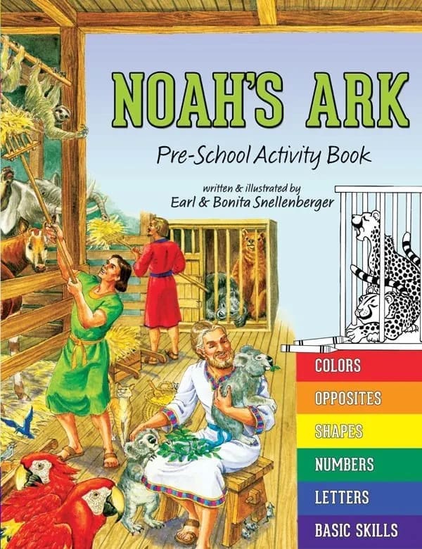Turn the history of Noah’s ark into a wonderful learning adventure in this unique pre-school activity book. Young children learn about Noah’s ark while also discovering colors, opposites, shapes, numbers, letters, basic skills, and more!