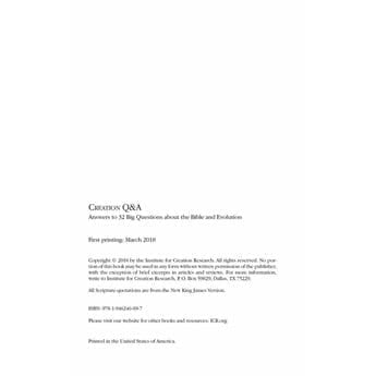 If you’re new to these things, then this booklet is for you. Gain a comprehensive understanding of creation from a scientific perspective, catch quick answers to a variety of evolutionary arguments, and discover a world of top-notch research that confirms what the Bible says about our origins. If you’ve got questions about genetics, radiometric dating, geology, dinosaurs, the Big Bang, Noah’s Ark, or even tree rings — we’ve got answers.