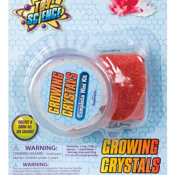 A popular STEM toy from Toy Science, Growing Crystals is a miniature crystal grow kit that lets kids create colorful structures in minutes. Each kit includes 1.2 ounces of crystal compound, 1 plastic cup, 1 stirring stick, and 1 stone base. Comes in 6 color options, including red and white, among others. A peggable blister card contains all the necessary materials for 1 crystal. Just add water!